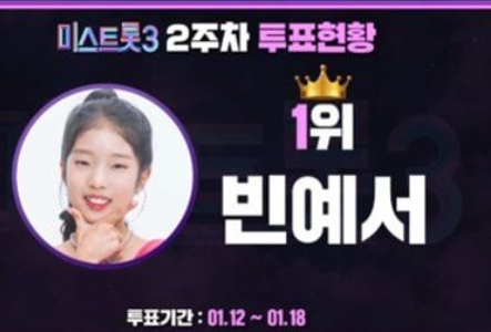 2주차때 투표 집계결과 빈예서가 1위를 차지하였는데요..