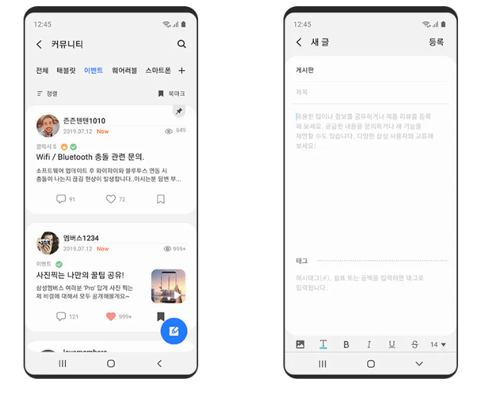 그리고 삼성 멤버스 커뮤니티도 존재하고 있는데요..