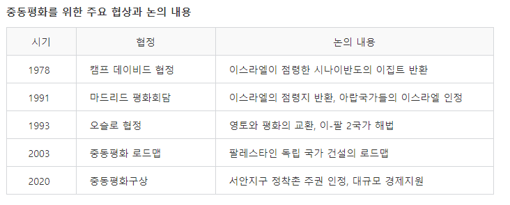 4번의 중동전쟁으로 현재 이스라엘이 팔레스타인 대부분의 지역을 차지하게 되면서 이 지역에 있는 팔레스타인들은 난민으로 전락하게 되고 1993년 오슬로 평화협정을 비롯해 여러 평화협정이 체결되었지만 합의안이 제대로 이행되지 않으면서 최근과 같은 공격이 계속되고 있는 것이죠..