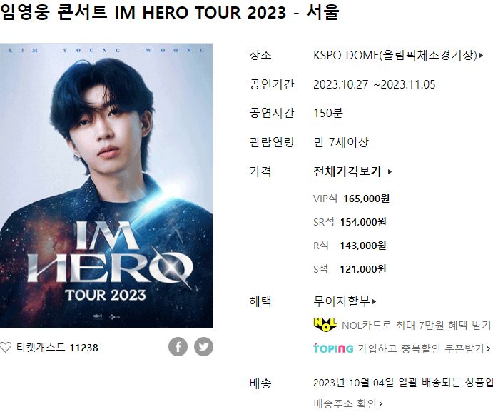 임영웅의 콘서트 IM HERO TOUR 2023 - 서울 티켓이 어제 20시에 오픈되었습니다.