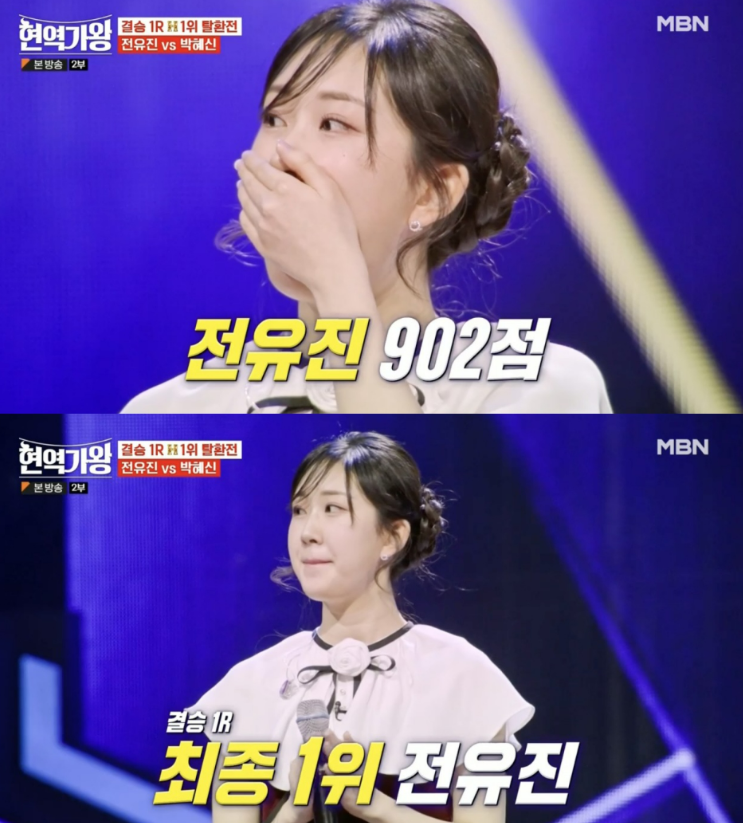 현재 현역가왕의 결승전 1~2라운드가 시작되는데요.. 1라운드는 전유진이 1위를 차지하였습니다.