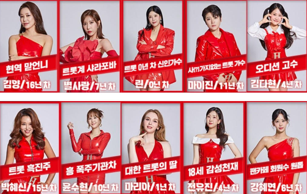 현역가왕 탑 10 강혜연,김다현,김양,린,마리아,마이진,박혜신,별사랑,윤수현,전유진이 국가대표 탑 7을 향해 대망의 결승전을 치르는 모습이 방영되었습니다.
