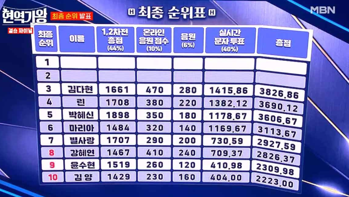 현역가왕 최종순위